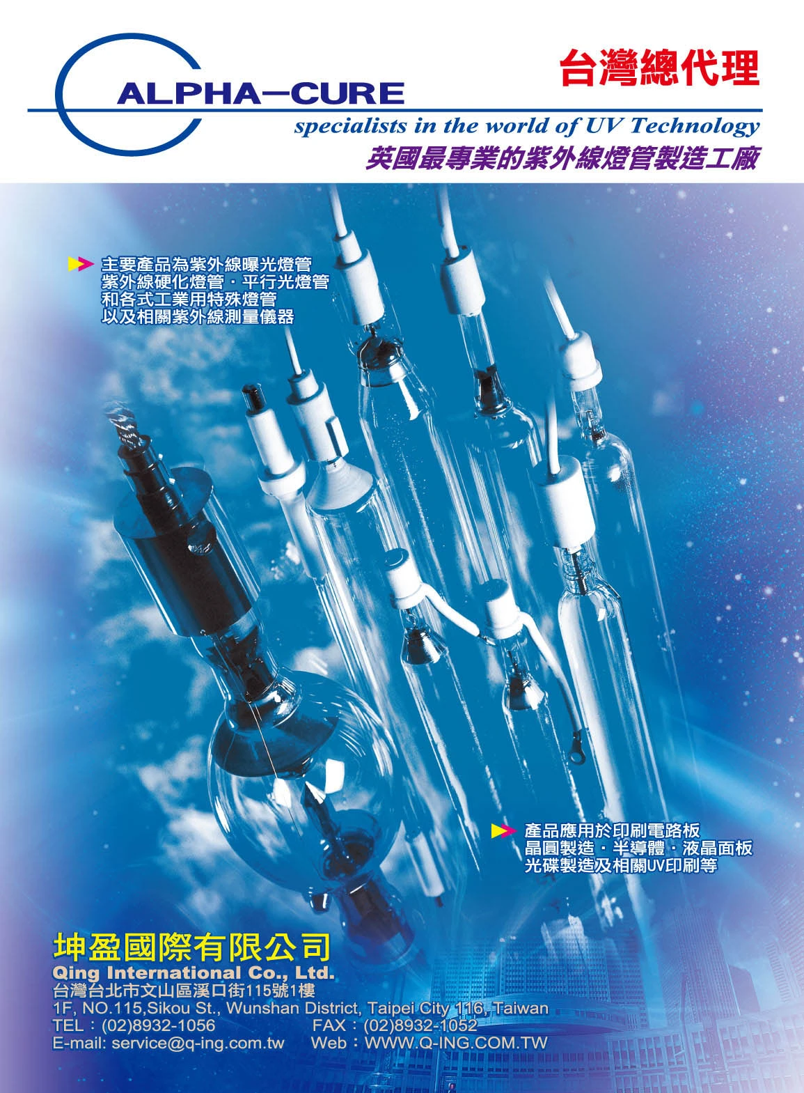 銷售硬化用紫外線燈管、石英相關產品等